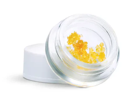 Diamonds are a form of concentrate that have a crystalline structure and tend to be high in THC-a. Diamonds focus on the separation of cannabinoids and terpenes so consumers are left with nearly pure THC. Diamonds can be sold as an isolated product or can be mixed in with terpene "sauce".
