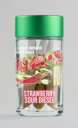 Introducing Jetpacks' FJ-Packs Infused Strawberry Sour Diesel Pre-Rolls, the perfect companion for those seeking a little extra relaxation and fun. These pre-rolls are packed with a delicious infusion of flavors that will tantalize your taste buds. Allegedly crafted with the perfect balance of CBD and THC, these pre-rolls may offer a potentially blissful experience. The unique terpene profile adds an extra layer of complexity to the smoking experience. Whether you're unwinding after a long day or hanging out with friends, Jetpacks' FJ-Packs Infused Strawberry Sour Diesel Pre-Rolls are sure to elevate any moment.