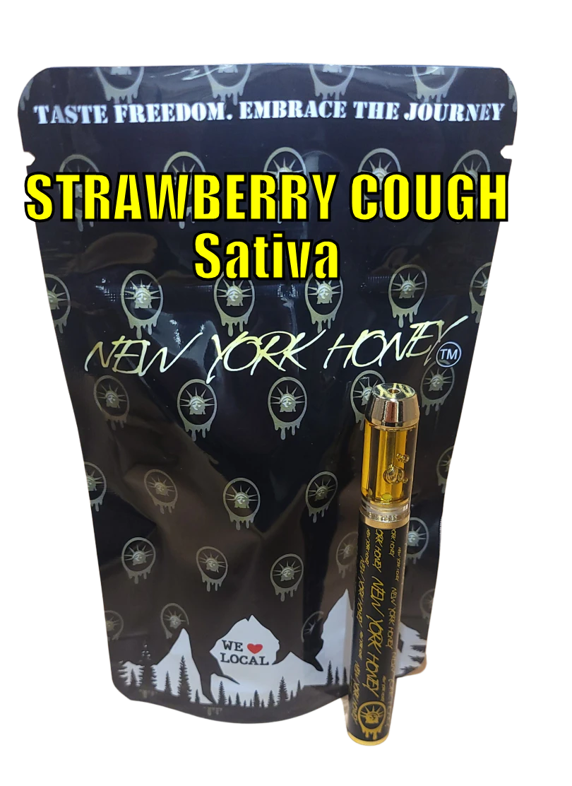 Strawberry Cough is a potent sativa strain a cross of Haze and Strawberry Fields known for itssweet strawberry aroma and uplifting euphoric effects. New York Honey's vape an eco-friendlyproduct from Veterans Choice Creations is hand-crafted rechargeable and reusable.Why Choose Us? Made in Gloversville NY Veterans Choice Creations is a proud 100% ServiceDisabled Veteran-owned company. We pay fair wages offer full benefits and care about ourcommunity. When you choose New York Honey you're not just supporting a company but anentire community.