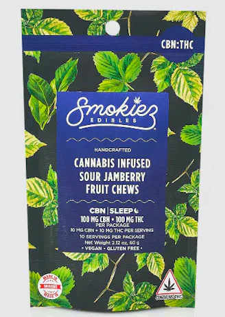 Experience a tangy twist on relaxation with Smokiez gummies - Sour Jamberry CBN available in a 10-pack with a total of 100mg. These gummies are carefully formulated to offer a balanced blend of CBN and THC, designed to help you unwind and find a peaceful state of mind. The Sour Jamberry flavor adds a deliciously tart edge to the sweet berry notes, making each gummy a burst of flavorful satisfaction. Perfect for evening use, these gummies support deep relaxation and restful sleep, thanks to the calming effects of CBN paired with the gentle euphoria of THC. Whether you're winding down in the cozy streets of Park Slope, Brooklyn, or enjoying a quiet night in Forest Hills, Queens, these Sour Jamberry gummies are your ideal companion.