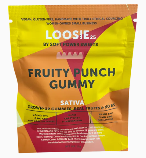 Fruity Punch from Soft Power Sweets is described as a bright, juicy, sativa-leaning gummy made with a blend of real fruit flavors rather than artificial coloring or syrups, giving it a clean, orchard-fresh taste. Soft Power Sweets’ “punchy take on an all-American staple,” replacing artificial ingredients with a mix of berries, ripe fruit sweetness, and a refreshing tang. the gummy is vegan, ethically made, and designed for flavor clarity and mood-brightening effects.