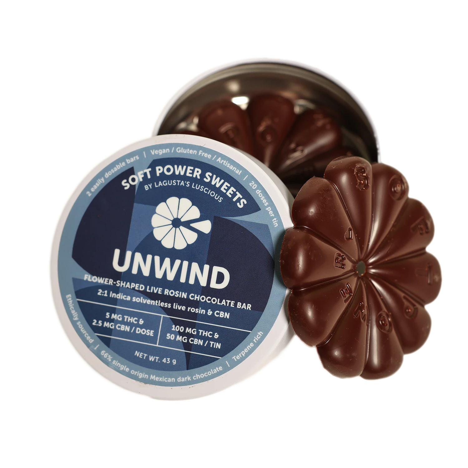 Soft Power Sweets - Unwind - 2:1 THC:CBN Live Rosin Chocolate - 100mg - Edible