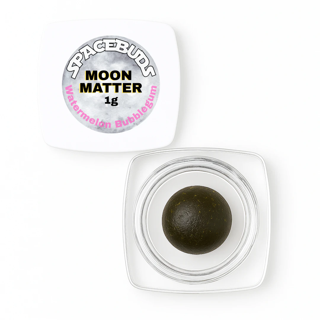 Bubblegum just got cosmic. Watermelon Bubblegum Moon Matter hits hard and fast. This sticky 1-gram ball is made from the same outer layer that makes Moonrocks so legendary, now rolling solo for your bowls, joints, blunts, and more. Packed with bubble hash, rosin, kief, and a touch of flower, it brings watermelon bubblegum flavor mixed with earthy strength. Expect a heavy, euphoric high that keeps you floating far above the ordinary.
