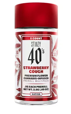 Stiiizy is setting the standard in the pre-roll game with the most revolutionary and innovative products. Elevate your pre-roll game.Stiiizy 40s pre-rolls are setting the standard with high potency, cannabis infused joints coated evenly with kief. Using our proprietary live resin infusion methods, we’ve designed every pre-roll to offer 40%+ THC potency with a unique flavor profile. With a smooth inhale and tasteful exhale, each and every Stiiizy 40 is packed with indoor grown flower, specifically made to ensure a potent and long-lasting high. Spark up the 40s.